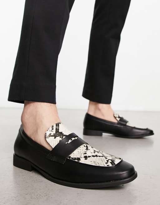 London Rebel X faux leather penny loafers in snake print