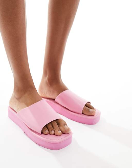 London Rebel flatform nineties sandals with square toe in pink