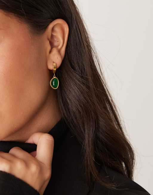 Lost Souls hoop earrings with dark green stone in 18kt gold plated stainless steel