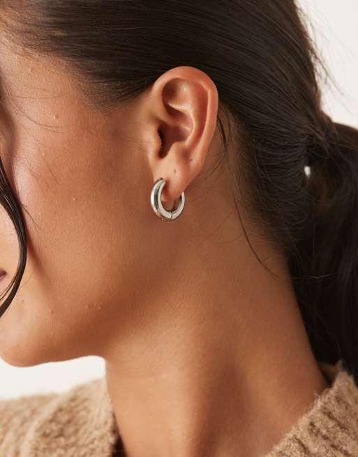 Lost Souls stainless steel 20mm tube huggie hoop earrings in silver tone