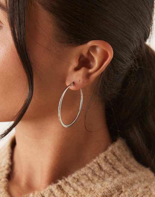 Lost Souls stainless steel 45mm flat hoop earrings in silver