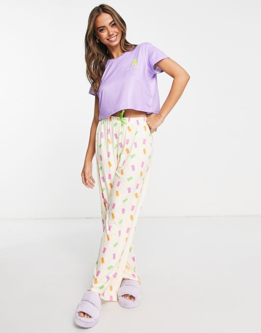 Loungeable gummy long pajama set in purple and cream