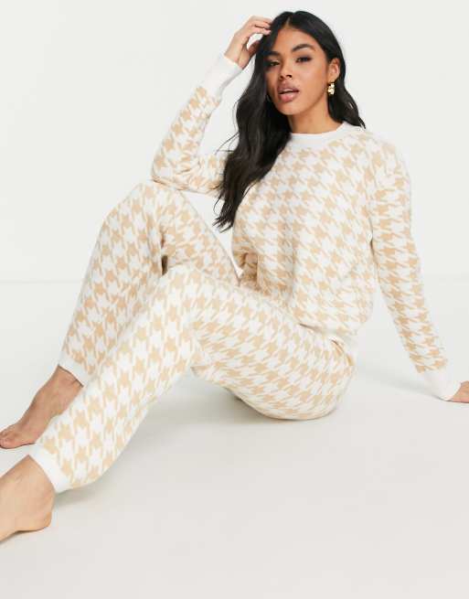 Loungeable houndstooth knit lounge pants in cream