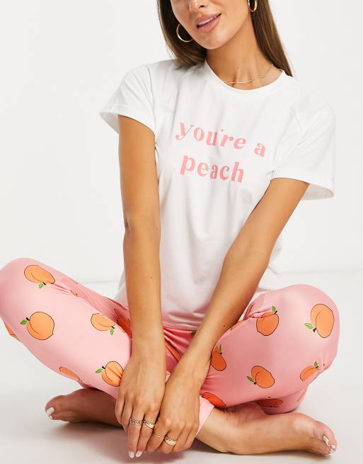 Loungeable peachy legging pajama set in white and peach