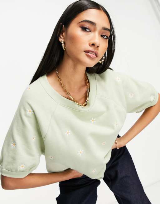 Madewell short sleeve embroidered daisy sweatshirt in green
