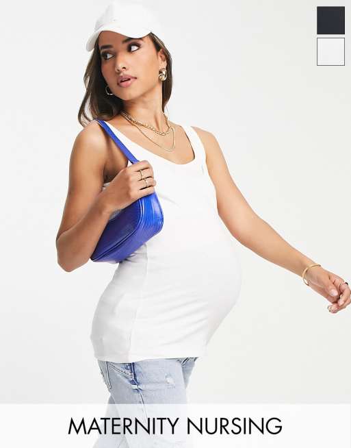 Mamalicious Maternity 2 pack nursing tank tops in black and white