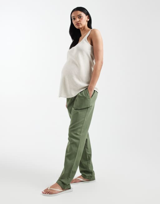 Mamalicious Maternity tie waist linen touch pants in khaki
