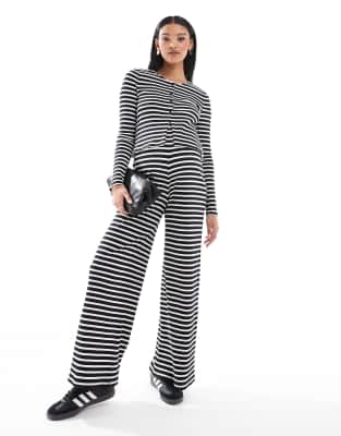 Mamalicious Maternity wide leg jersey pants in mono stripe - part of a set