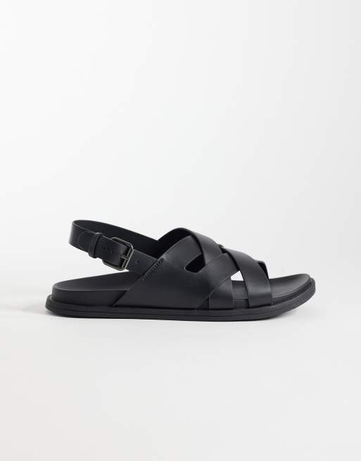 Mango 100% leather cross strap design sandals with buckle detailing in black