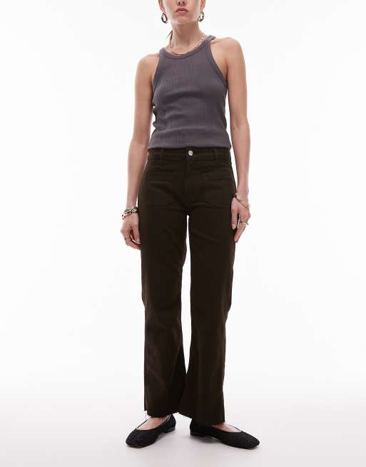 Mango Alex cropped kick flare front pocket jeans in chocolate