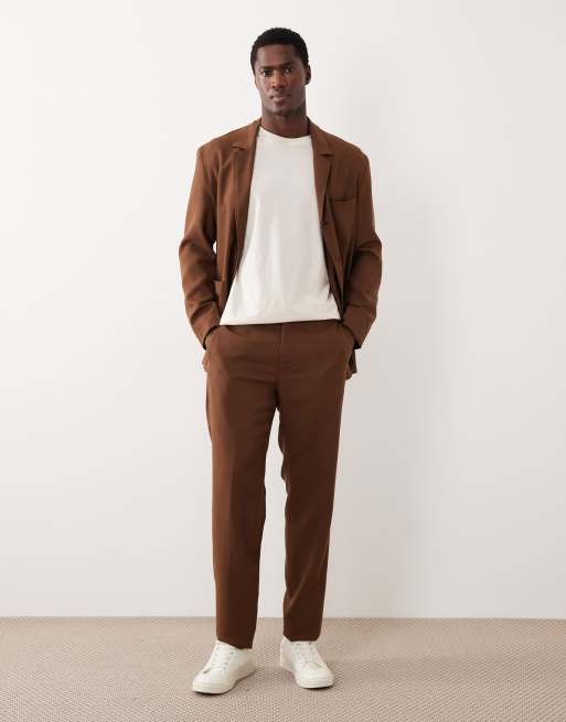 Mango bergamo premium wool mix tailored suit pants in burnt orange