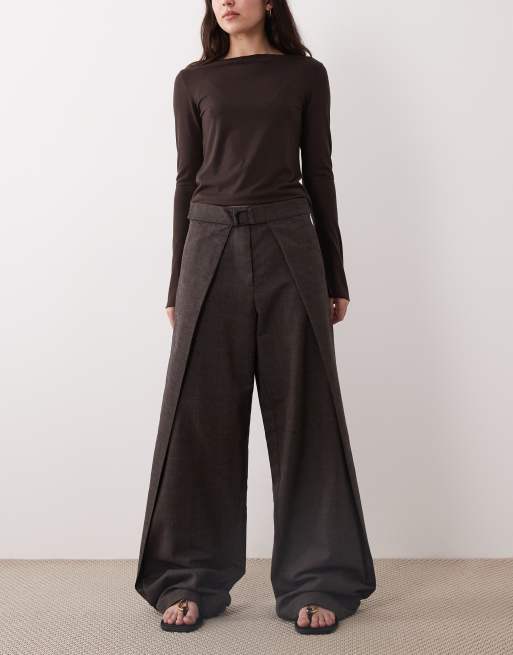 Mango Capsule premium tailored barrel pants with overlay detail in chocolate