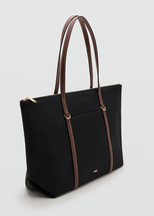 Mango classic tote bag with contrast straps in black