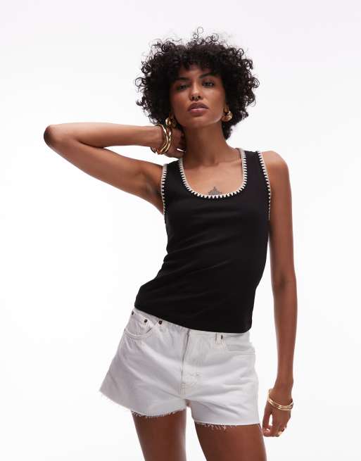 Mango contrast whipstitch trim tank top in black