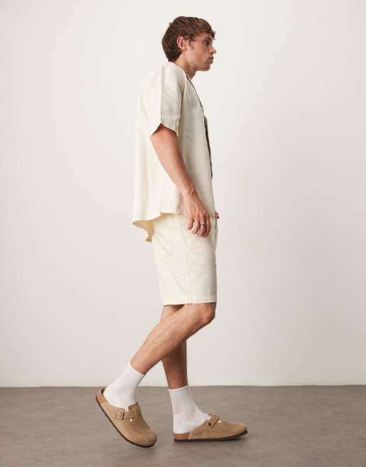 Mango cotton denim look short sleeve shirt and shorts set in beige