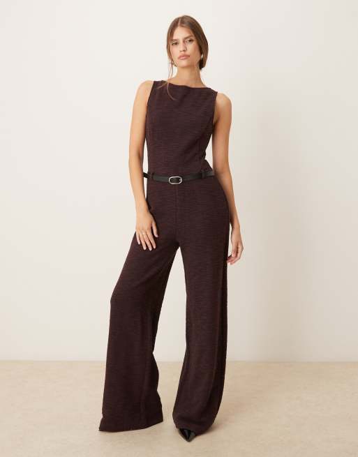 Mango cotton mix belted sleeveless jumpsuit in dark red