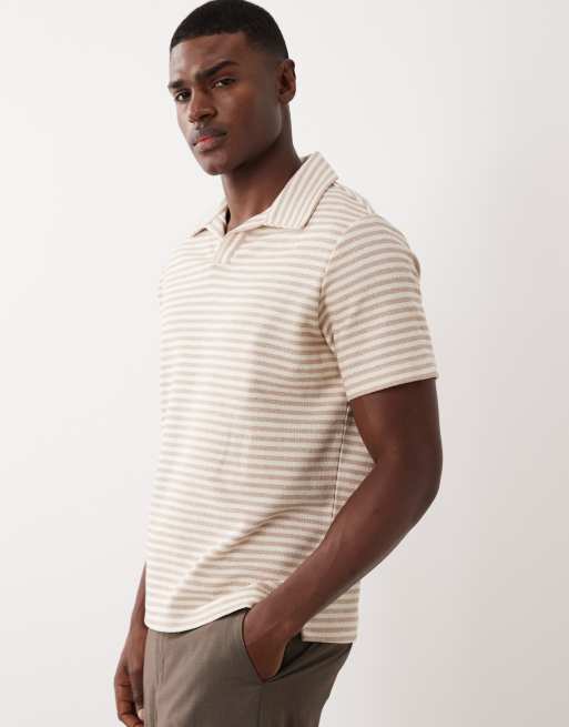 Mango cotton rich camp collar striped T-shirt in beige
