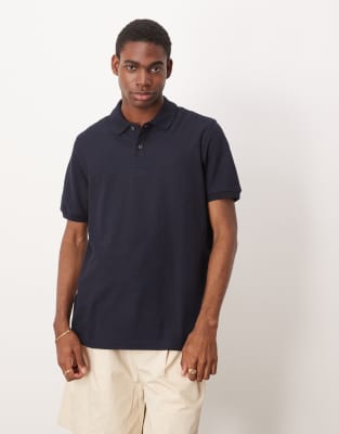 Mango cotton short sleeve polo shirt in navy