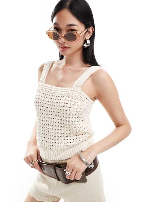 Mango crochet cami in beige
