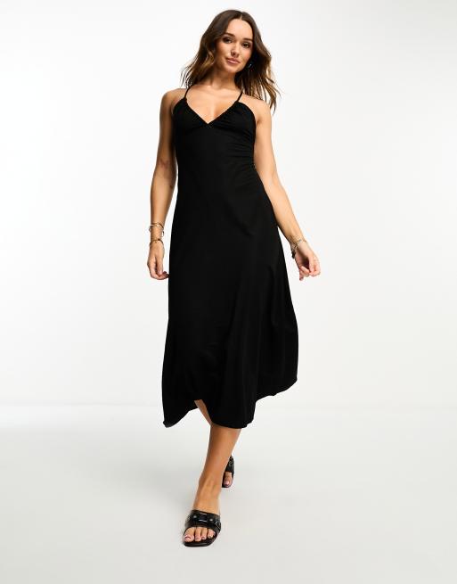 Mango cross-back midi dress in black
