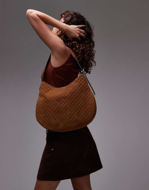 Mango embossed monogram leather bag in brown