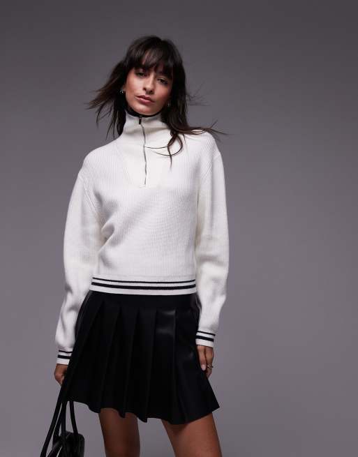 Mango half zip tipped sweater in white
