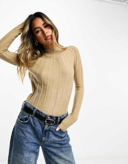Mango high neck sweater in tan