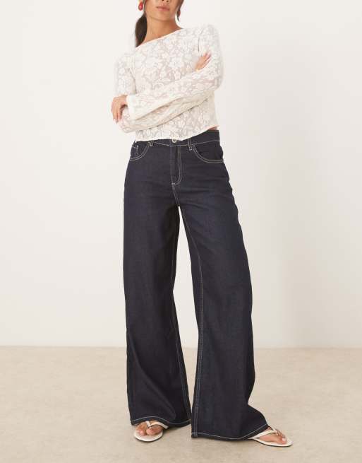 Mango Joy 100% cotton wide leg jeans with contrast stitch in indigo