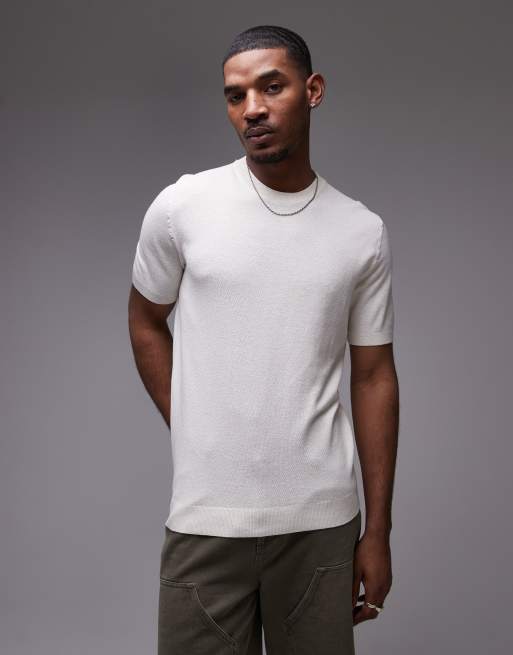 Mango knit smart T-shirt in white