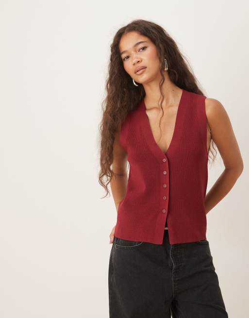 Mango knit v neck tank top in burgundy