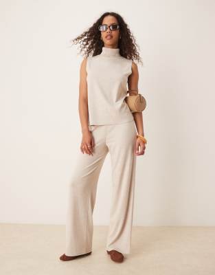Mango light weight knitted pant in light beige - part of a set