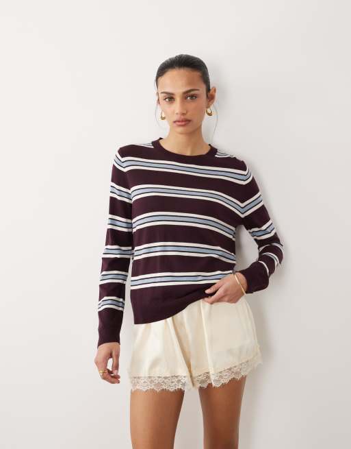Mango lightweight knit sweater in burgundy and blue stripes