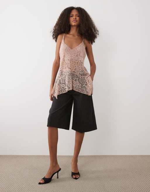 Mango longline lace cami top in pink