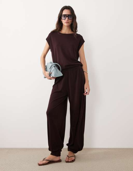 Mango Manis boat neck short sleeve top & pants set in dark red