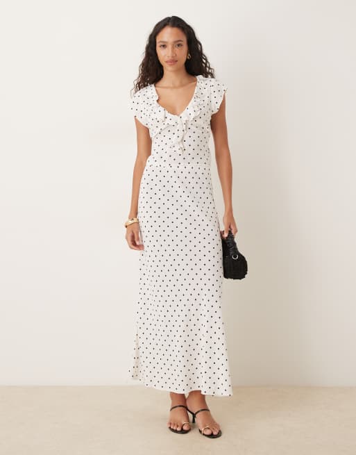 Mango midaxi skirt and ruffle detail blouse set in polka dots