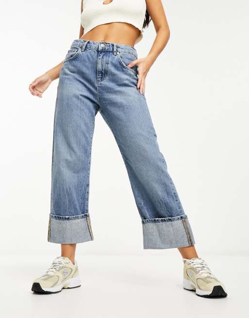 Mango oversized turn-up jeans in blue