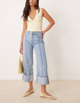 Mango pleat front turn up jeans in light blue