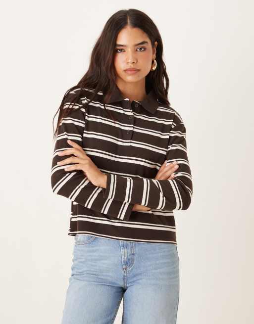 Mango polo shirt in brown and white stripe
