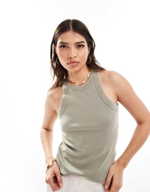 Mango racer tank top in washed khaki