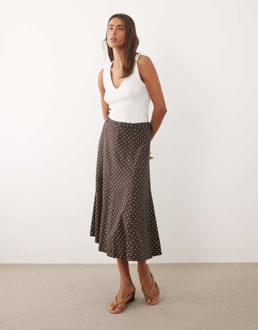 Mango Romeo linen mix midi skirt in black and white polka dots