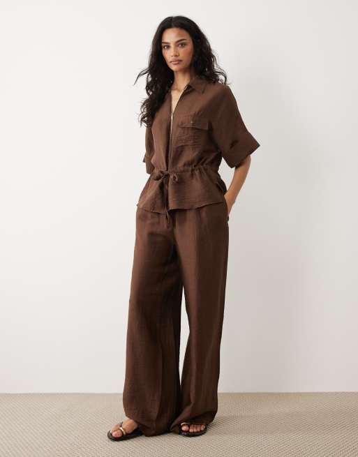 Mango Safa linen mix relaxed pants in brown - part of a set