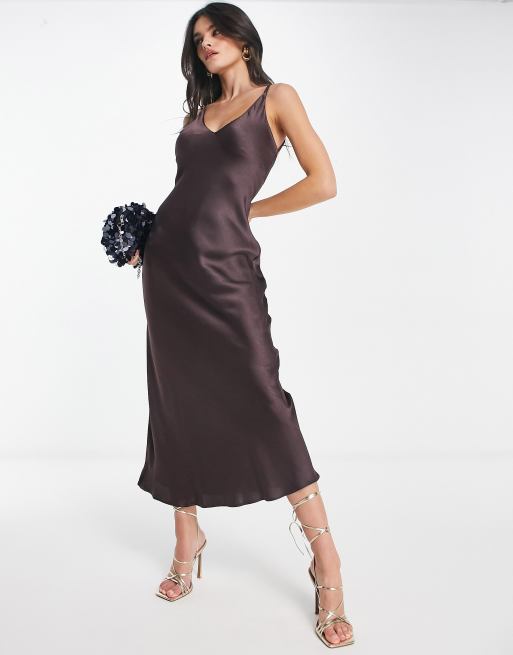 Mango satin midi dress in chocolate