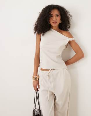 Mango sculpt twist shoulder tank top in ivory - part of a set