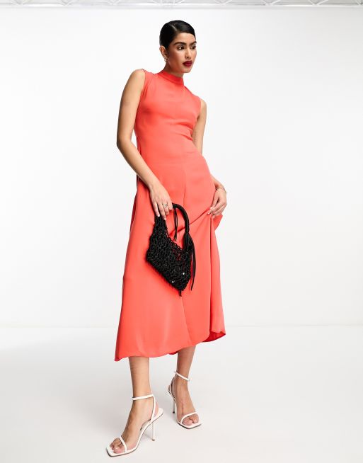 Mango sleeveless formal midi dress in red