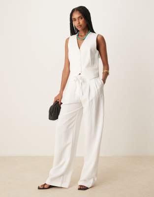 Mango straight leg lightweight tie waist detail pants in white - part of a set