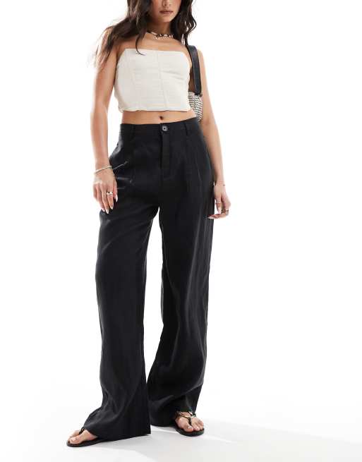Mango straight leg linen pants in black