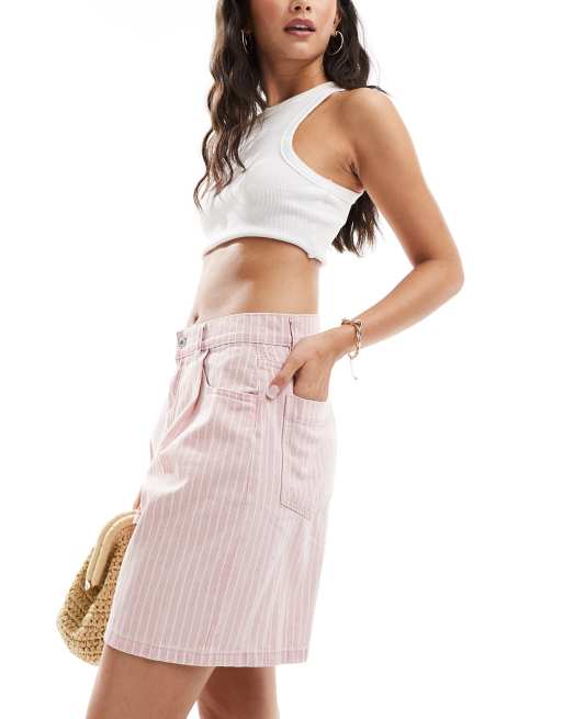 Mango stripe denim shorts in pink