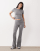 Mango Studios knit short sleeve top & fold over pants set with studs in gray