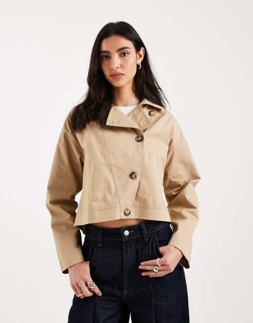 Mango Teen 100% cotton asymmetric short trench coat in beige