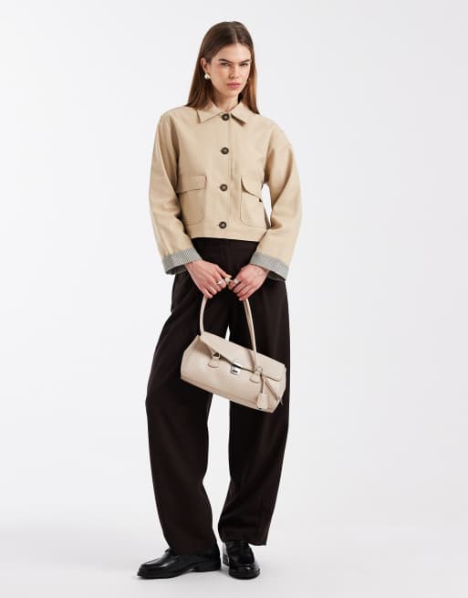 Mango Teen cotton rich cropped trench coat with contrast sleeve in beige